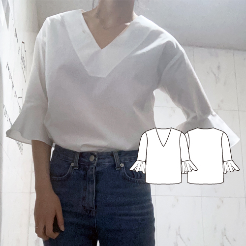 [패턴] W21S-B056 / 브이넥 소매훌 블라우스 (91화)