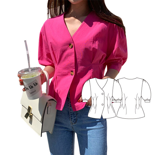 [패턴] W19S-B006 / 허리 맞주름, 소매 셔링 블라우스 (23화)